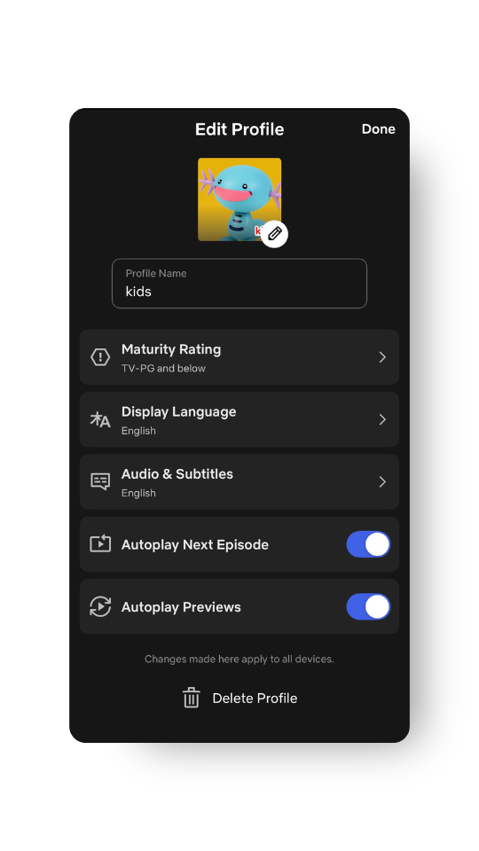 - Parents can set a “Maturity Rating” for each profile from TV-Y to NC-17